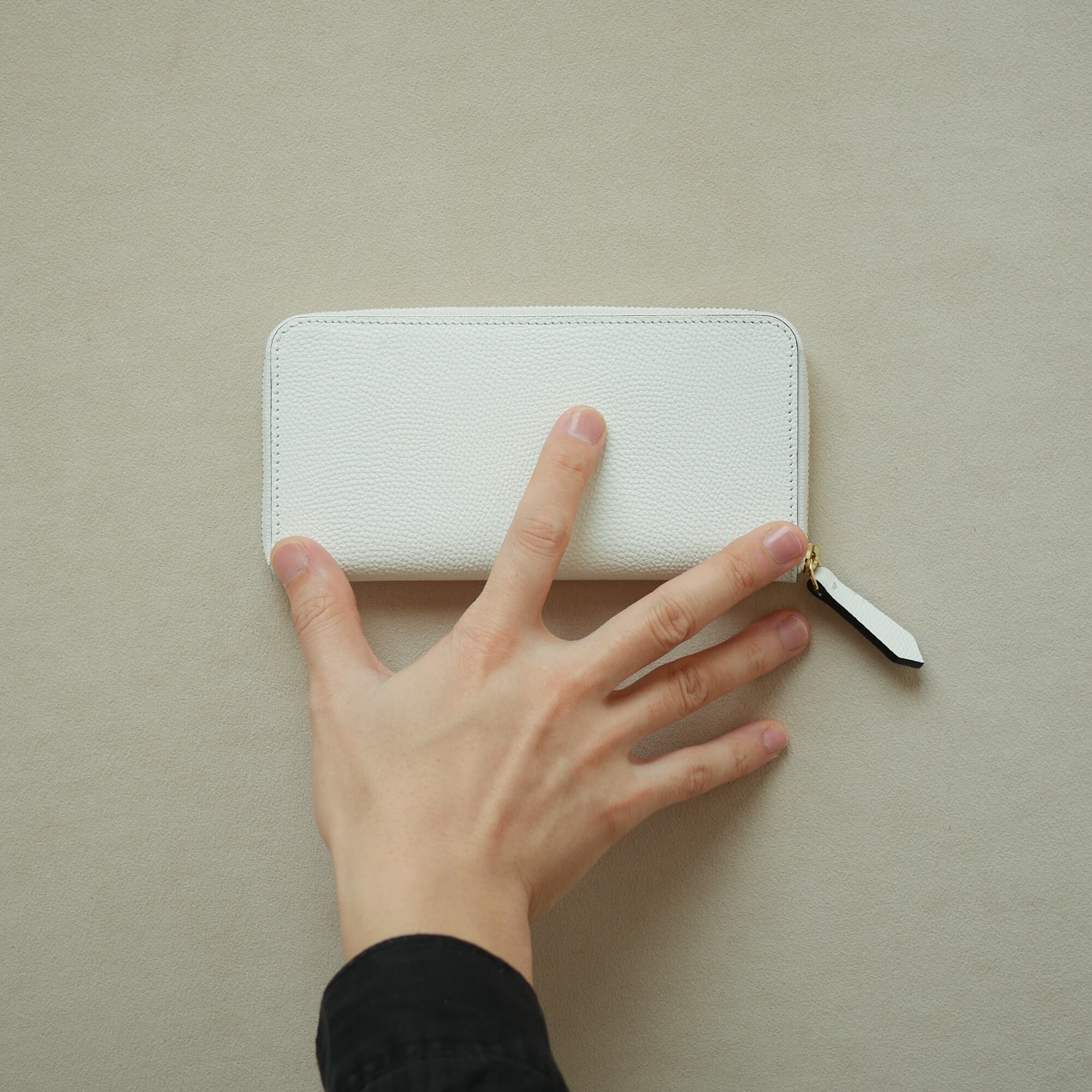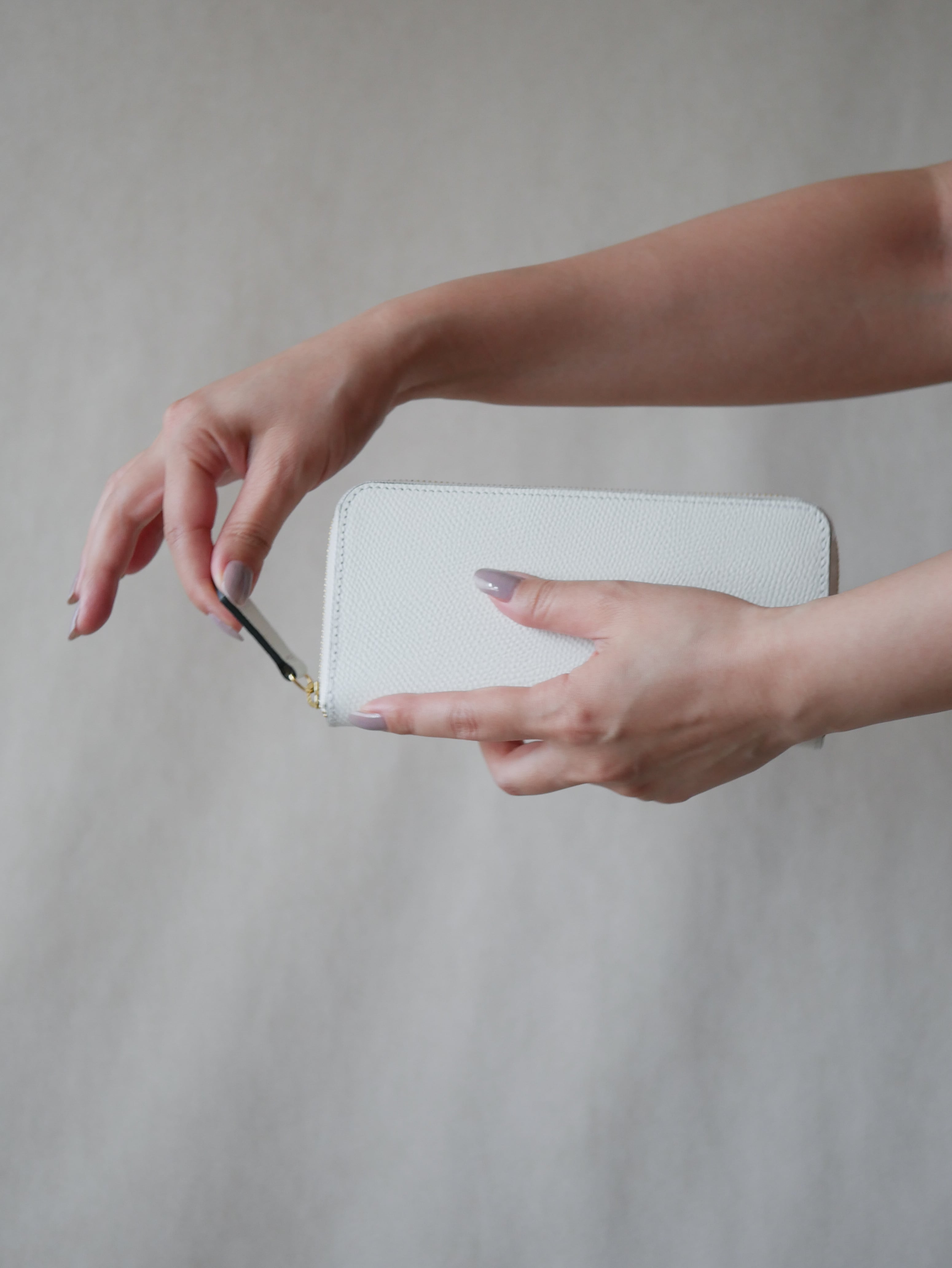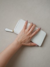 【Envie】ミニマル ロングジップウォレット / ホワイト -フレンチ エプソン-