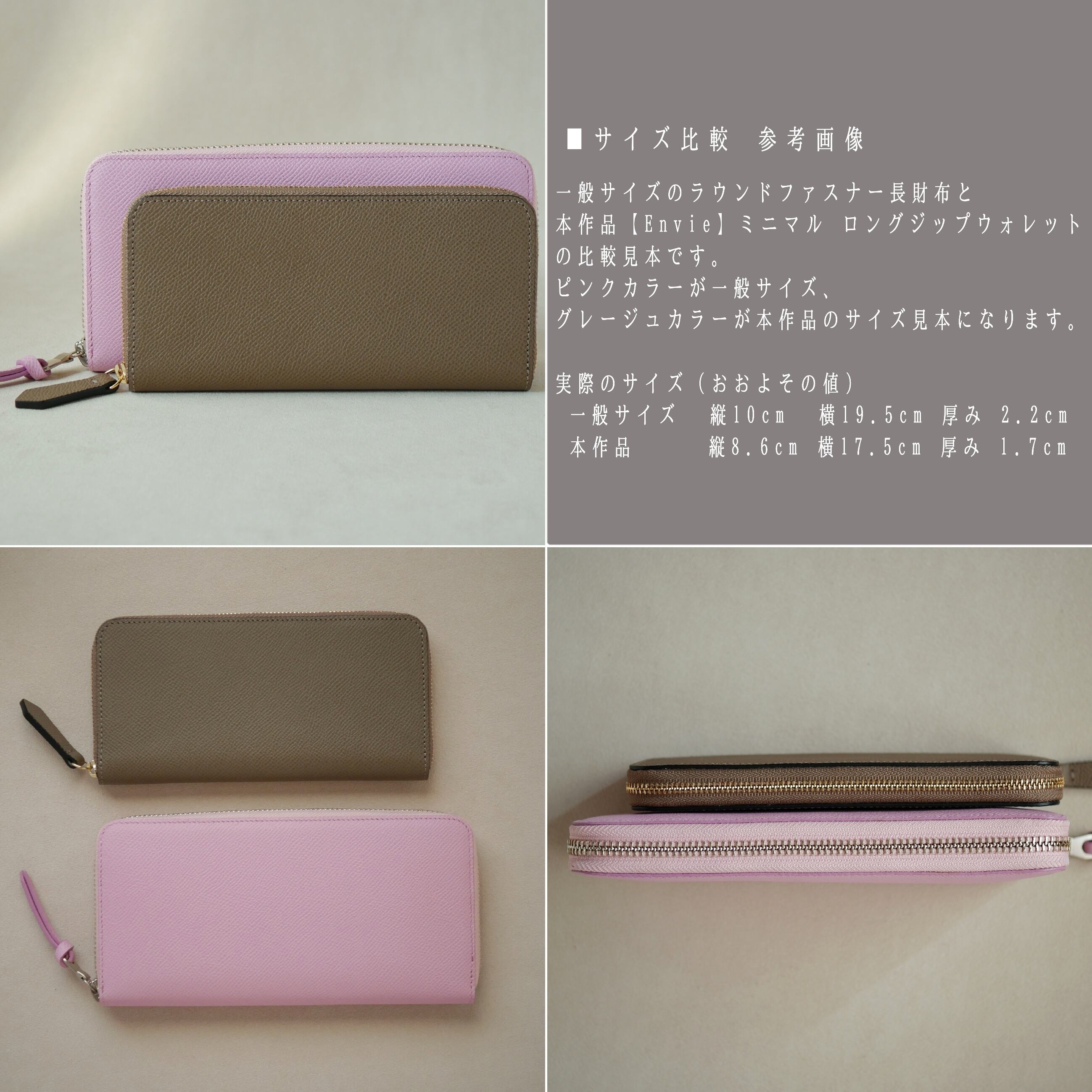 従来の長財布より一回り小さく、薄く仕立てました。