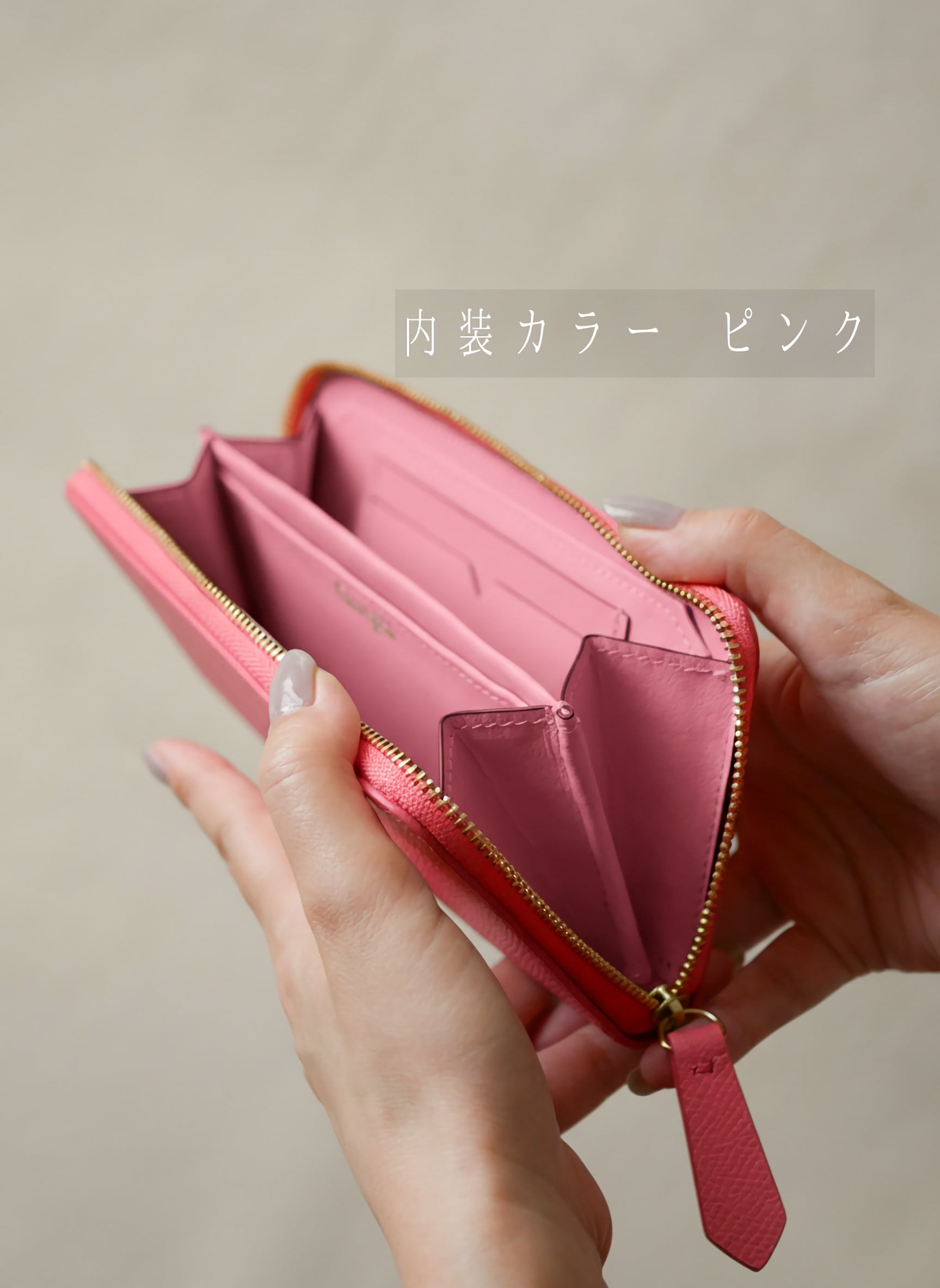 外装:フランス産牛革(エプソンレザー / アザレピンク)