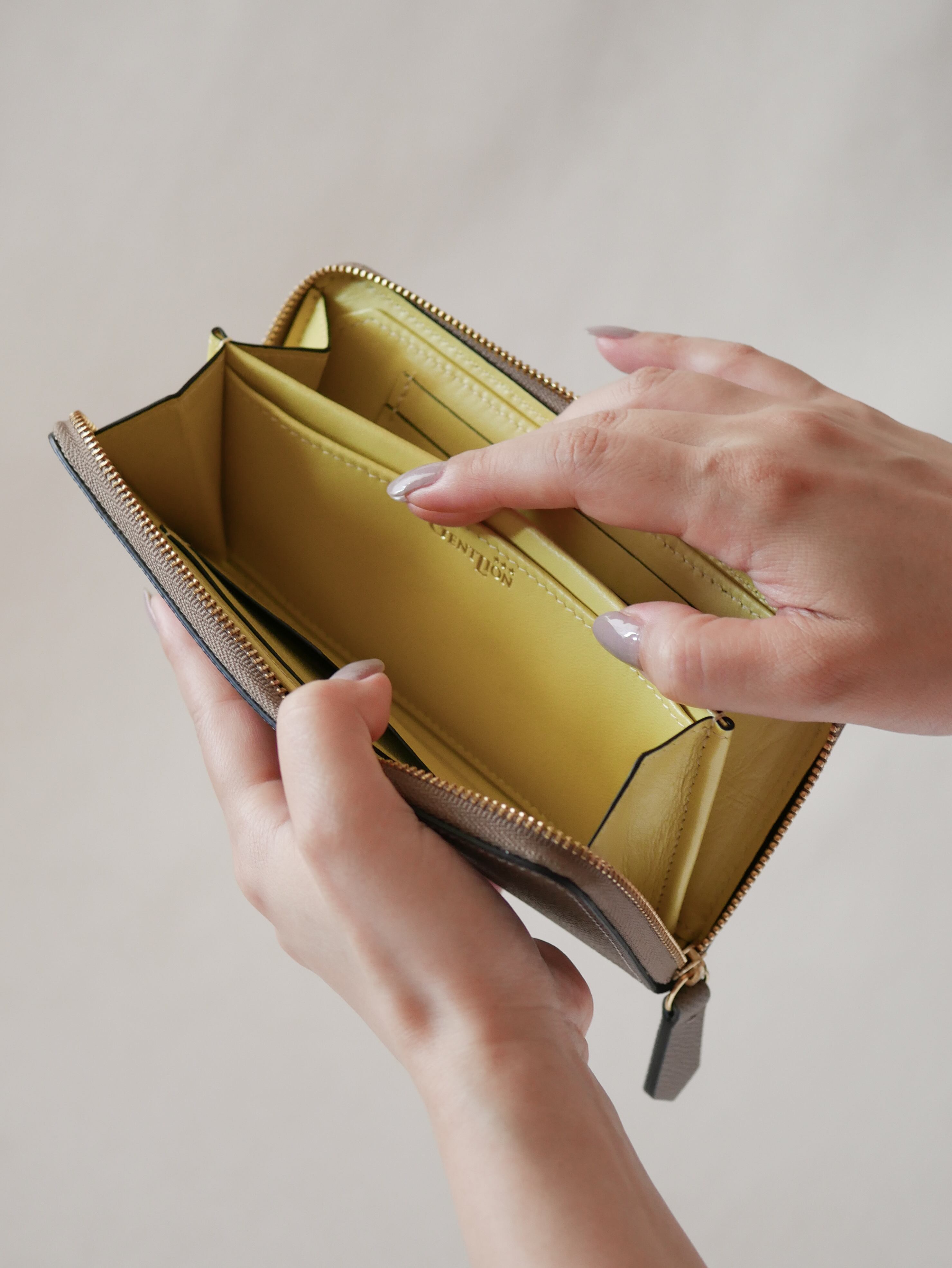 内装:国産牛革 イエロー or グリーンティー<コインスペース グレージュ>