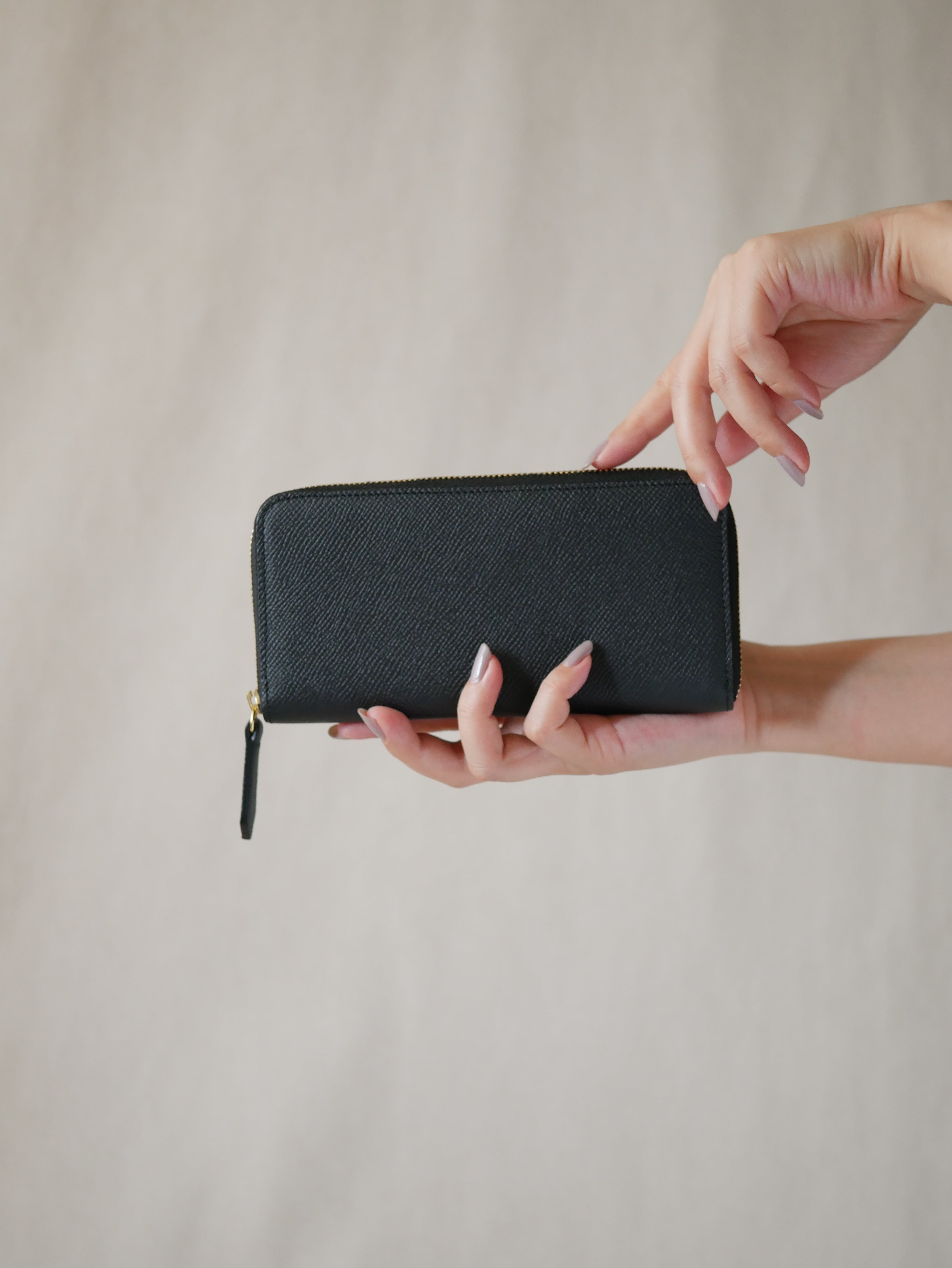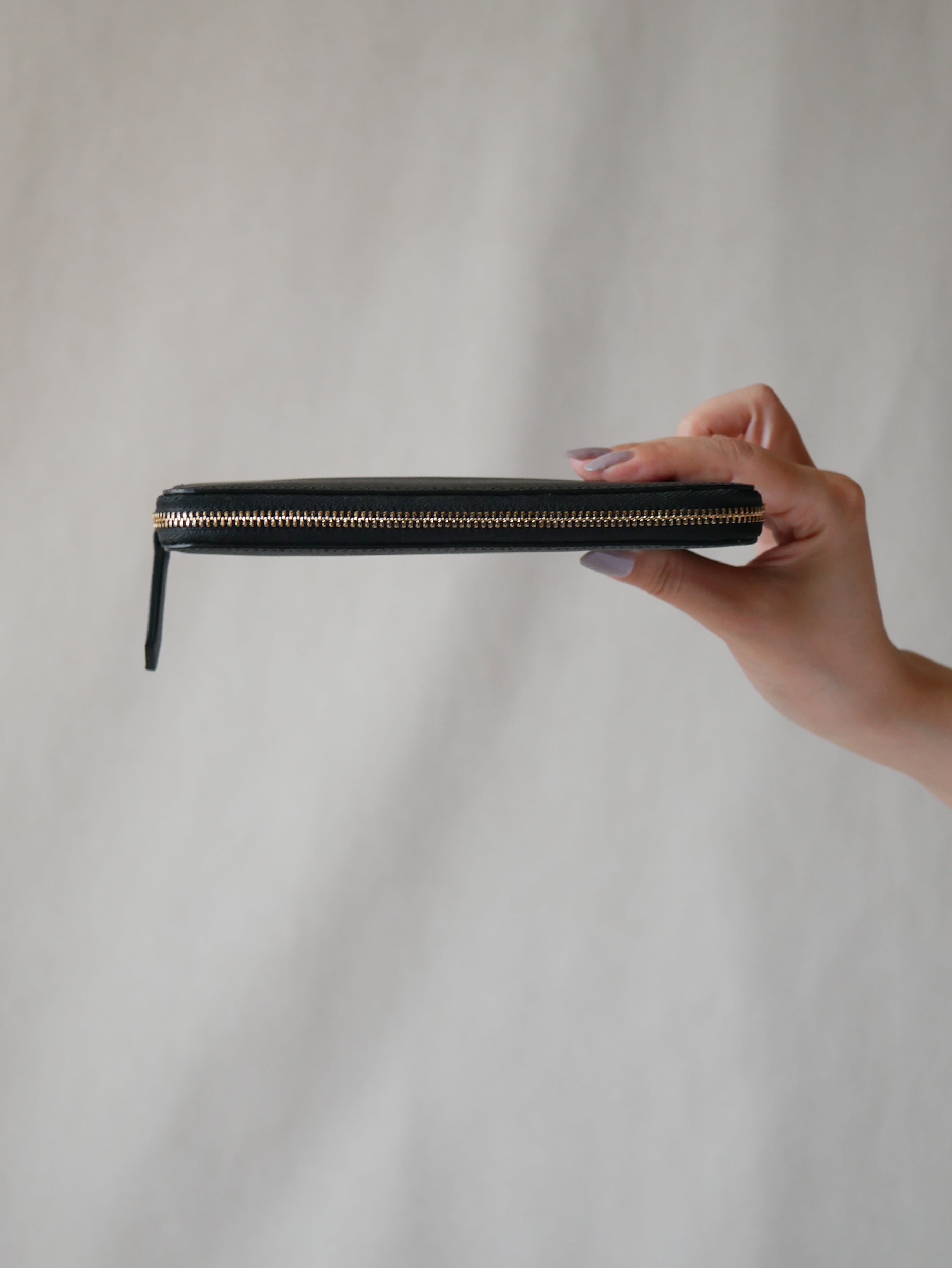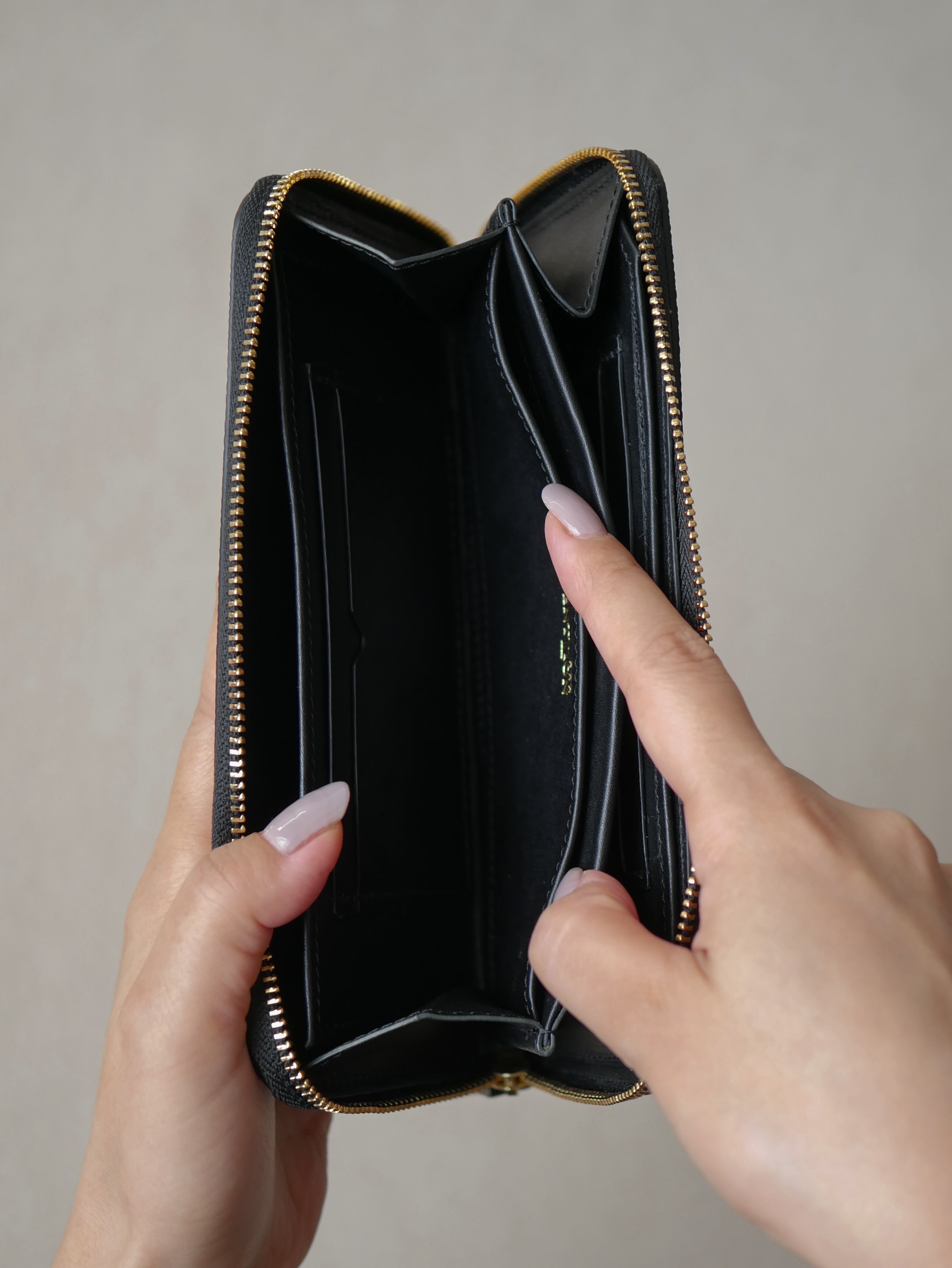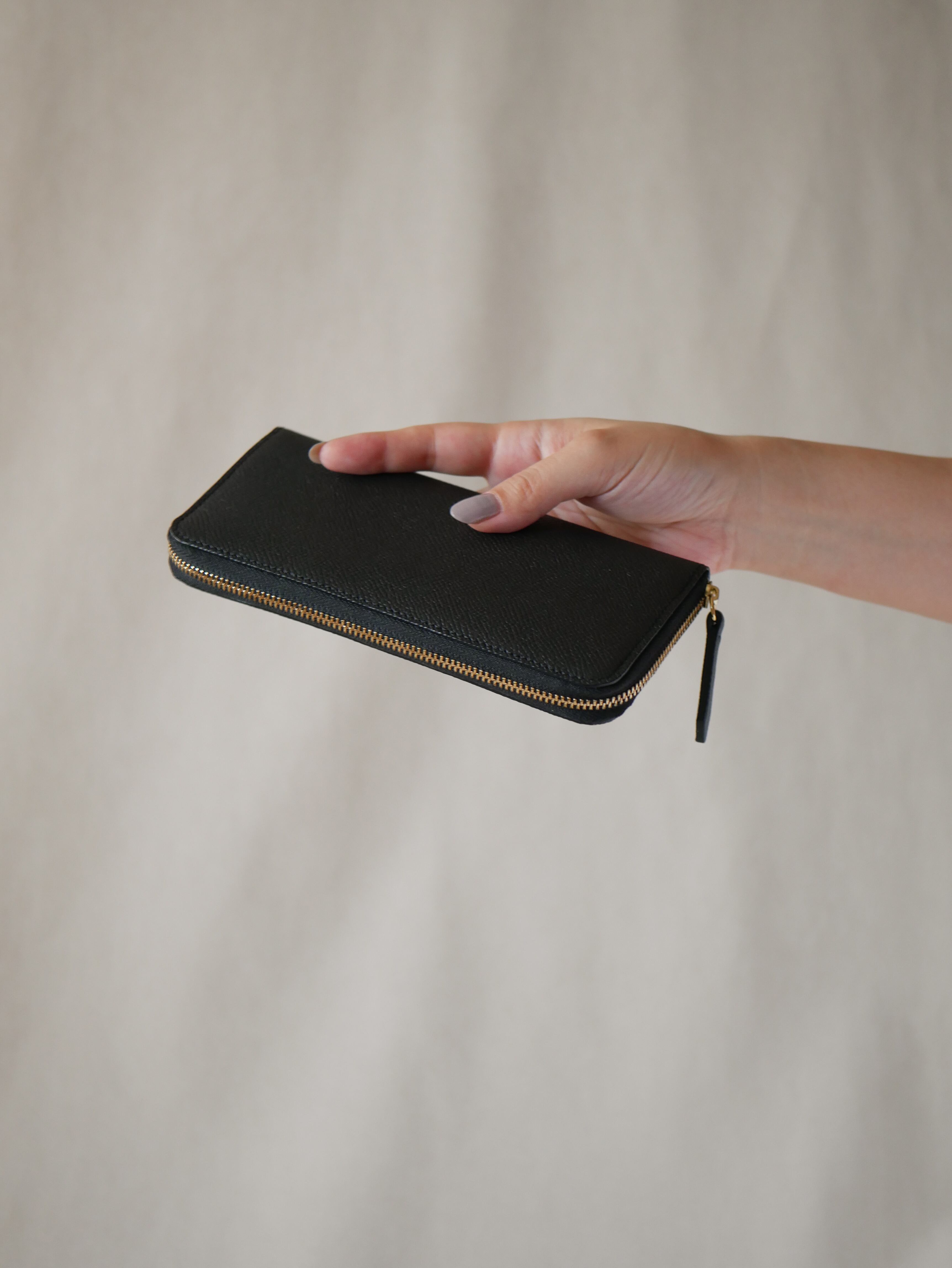 【Envie】ミニマル ロングジップウォレット / ブラック -フレンチ エプソン-