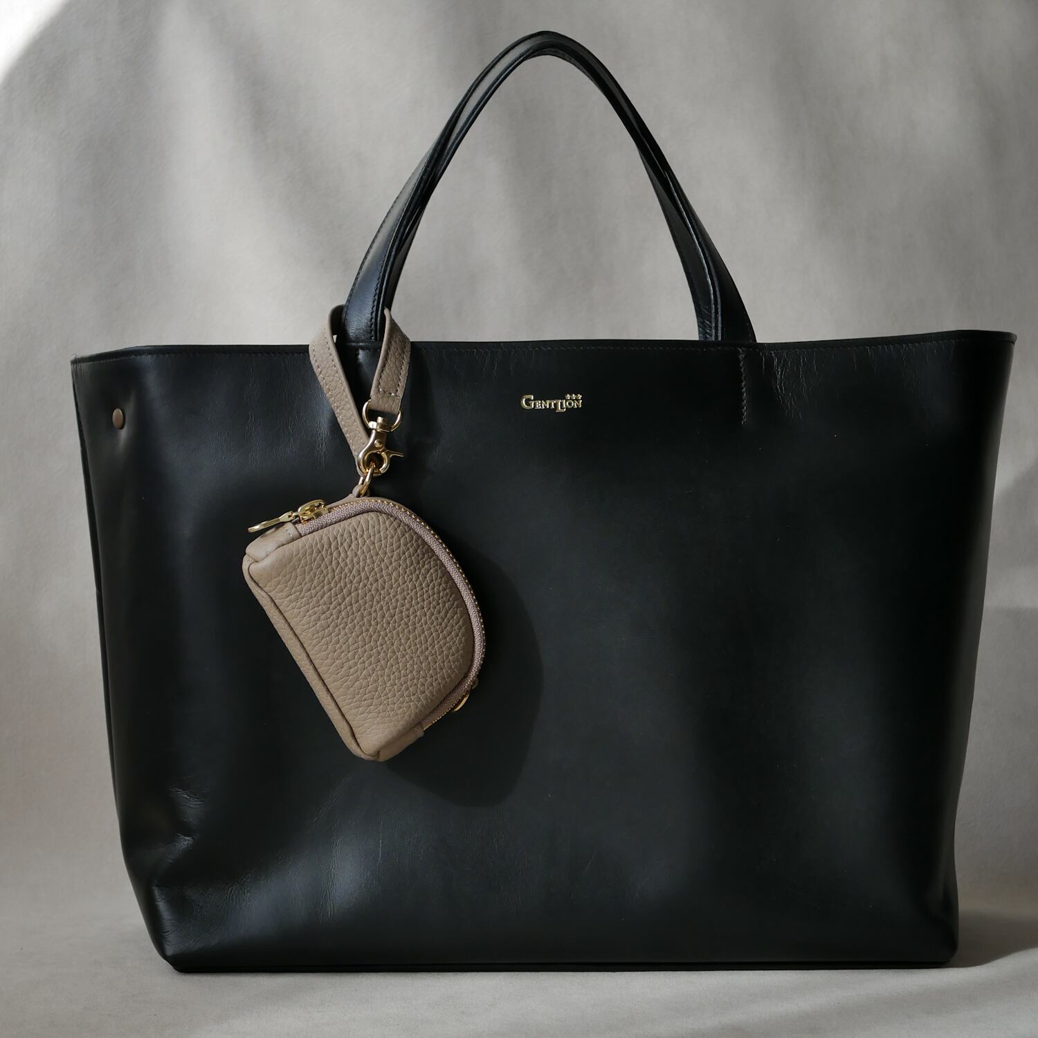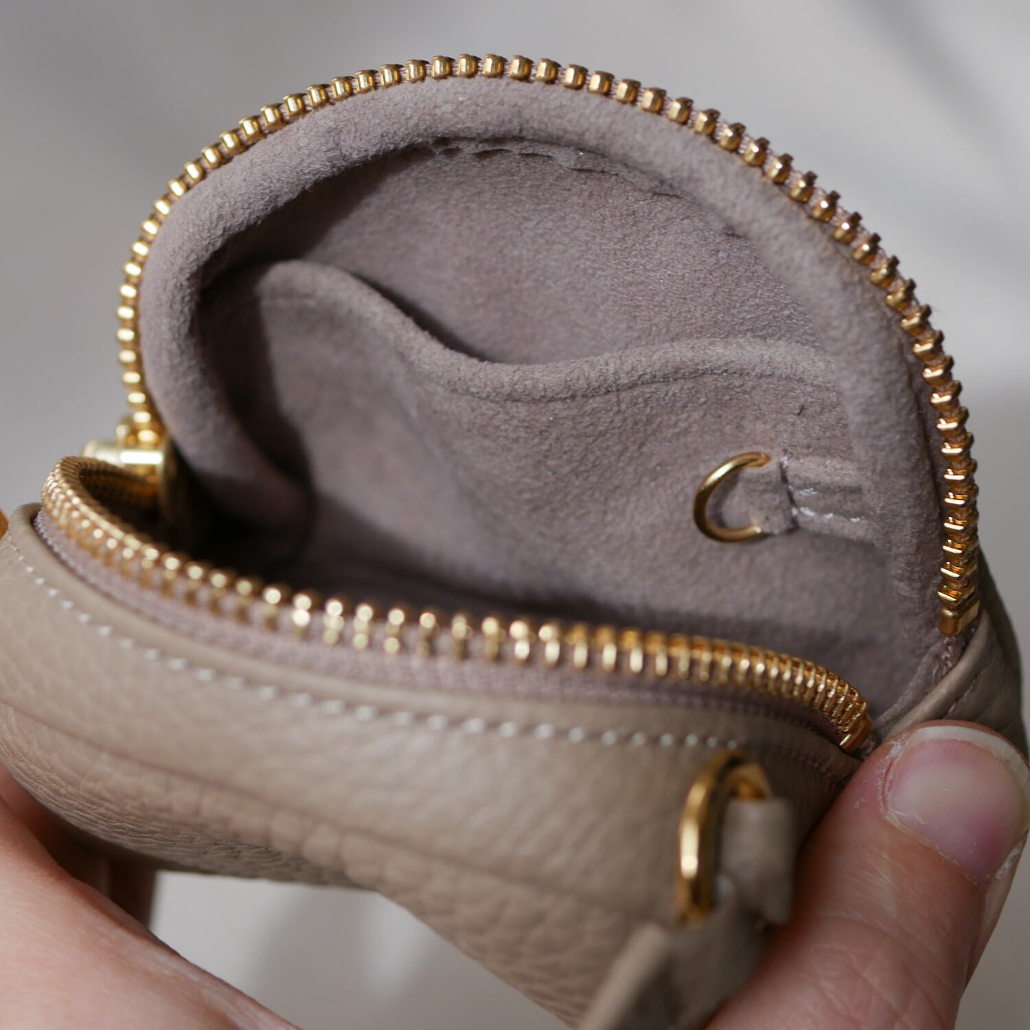 スマートキー2個を収めながら、軽やかな印象を保つ薄めのマチ設計。