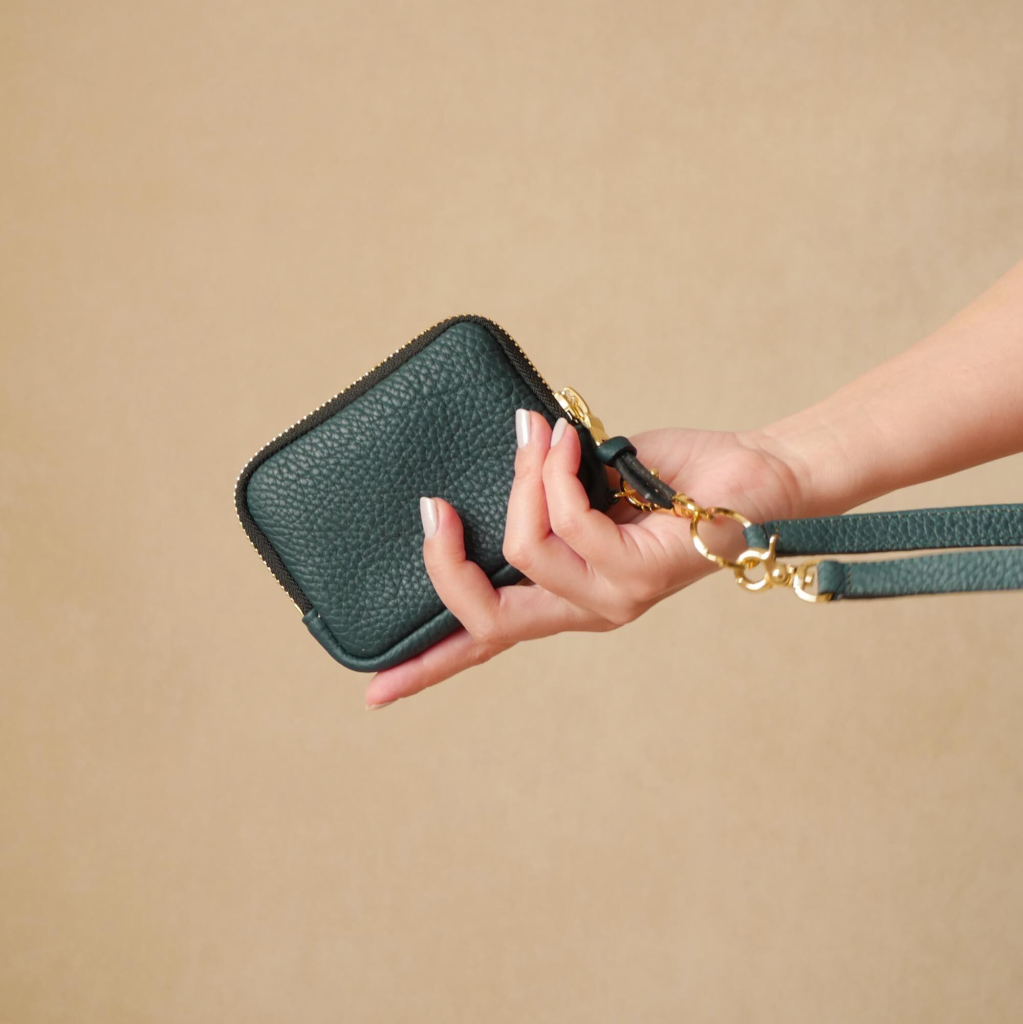 ヴェールシプレスの深緑色と、ブラックのファスナーテープとゴールドの金具の組み合わせがアクセントになり、シンプルながら個性が光るかっこいい配色です。