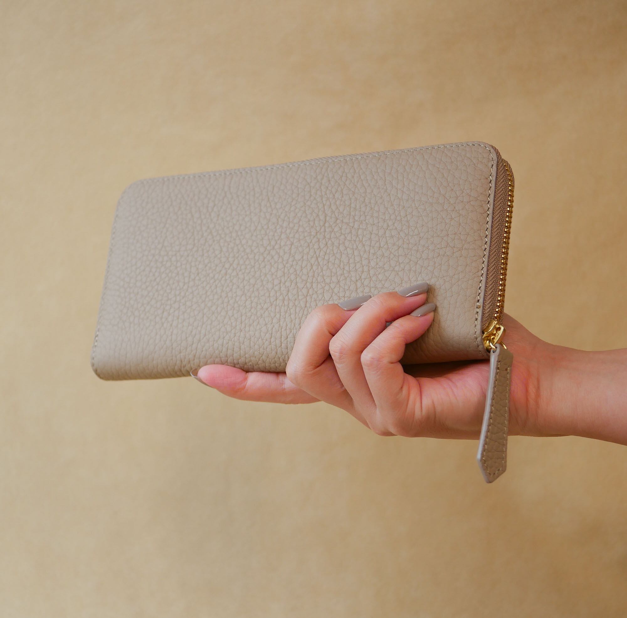 フランス産の高級皮革「トリヨンクレマンス」を外装に使用し、制作したラウンドファスナー長財布です。